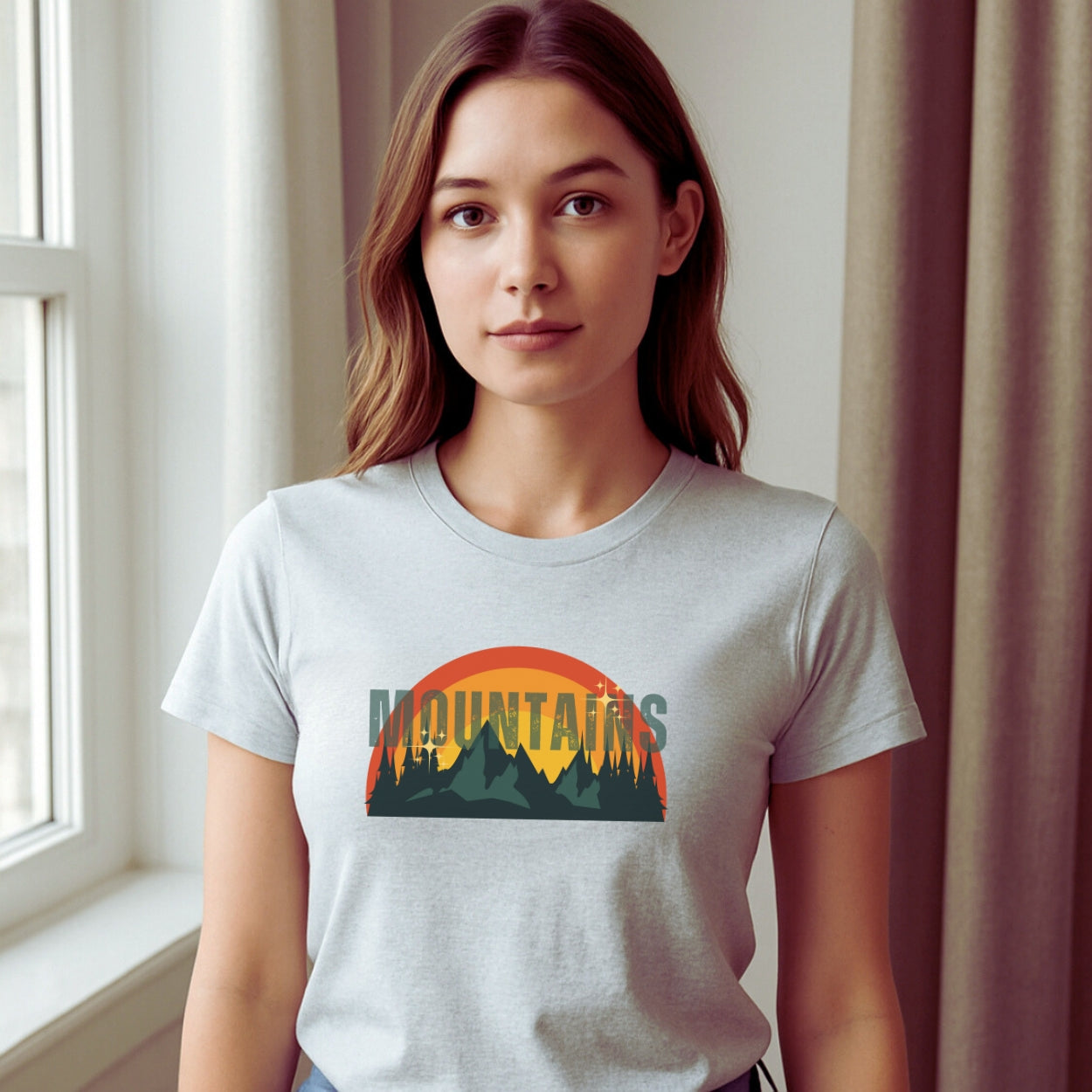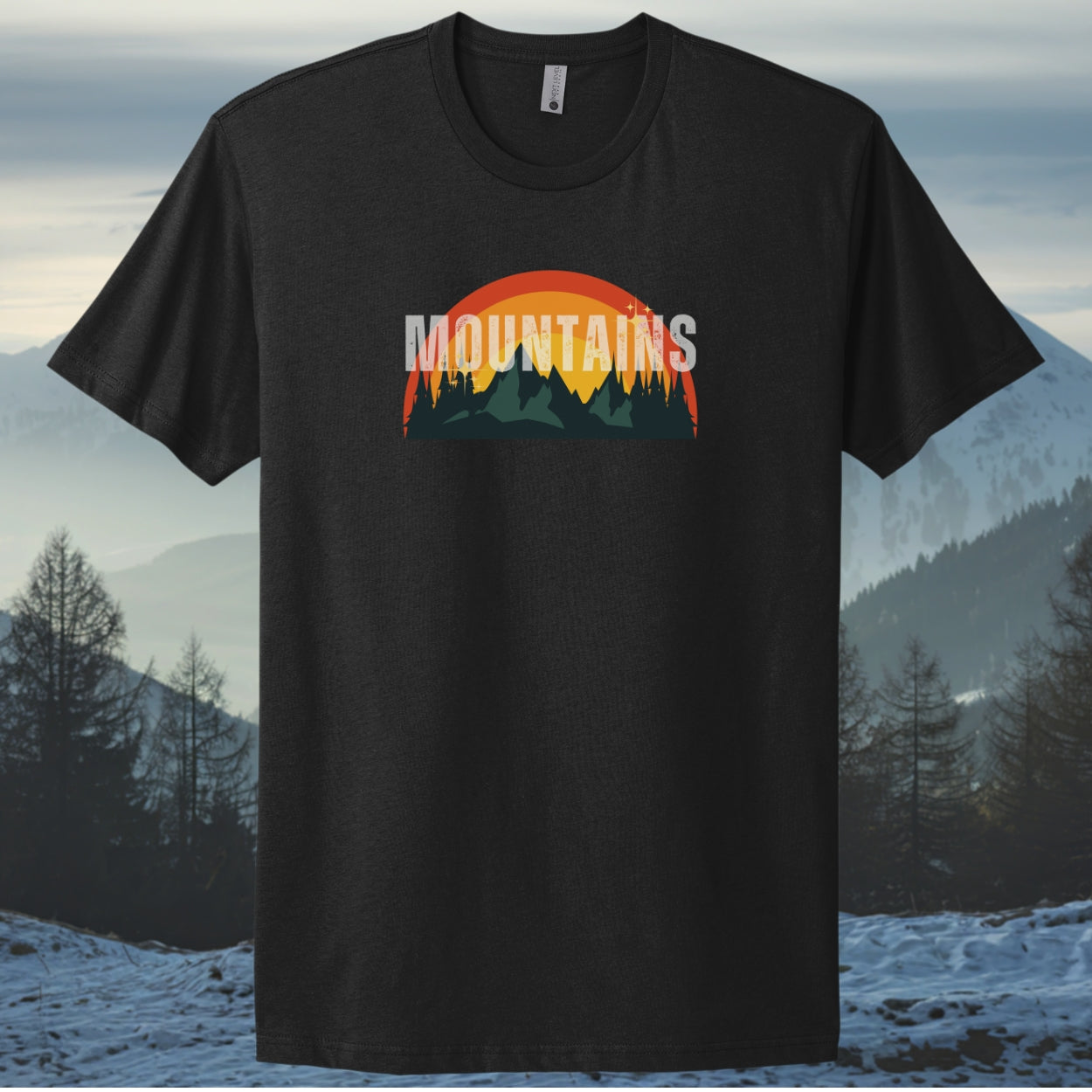 A soft, lightweight crew tee that carries the quiet thrill of the mountains with you. The vintage-style sunset graphic sits across the chest, its warm oranges and deep forest greens evoking early mornings on the trail and twilight views from the ridge. Wear it on cool mornings with a flannel tied at the waist or layered under a field jacket for evening campfires. The classic crew neckline and clean silhouette make it easy to pair with trail pants or jeans, while the breathable 4.3 oz fabric keeps you comfortable during long day hikes or relaxed weekends at the cabin. Subtle sleeve printing adds an extra handcrafted touch — like a souvenir from the path you love.